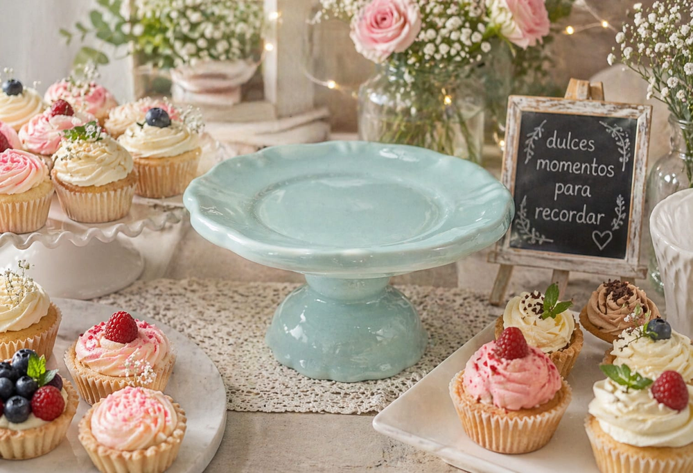 BASE PARA MUFFINS CON PIE CERAMICA CELESTE 16 TOTAL CM