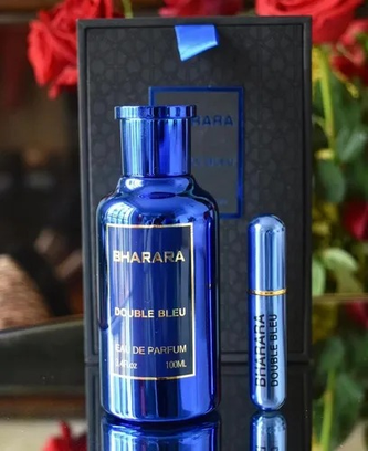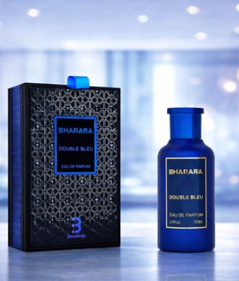 Double Bleu Eau de Parfum Bharara, lanzada en 2021, está clasificada como una fragancia para hombres y pertenece a las familias cítrica, especiada y amaderada.