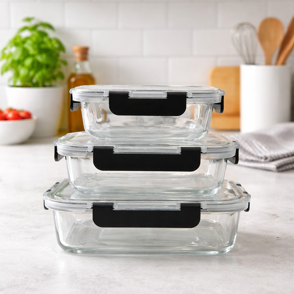 SET X3 TUPPER HERMETICOS RECTANGULARES DE VIDRIO
