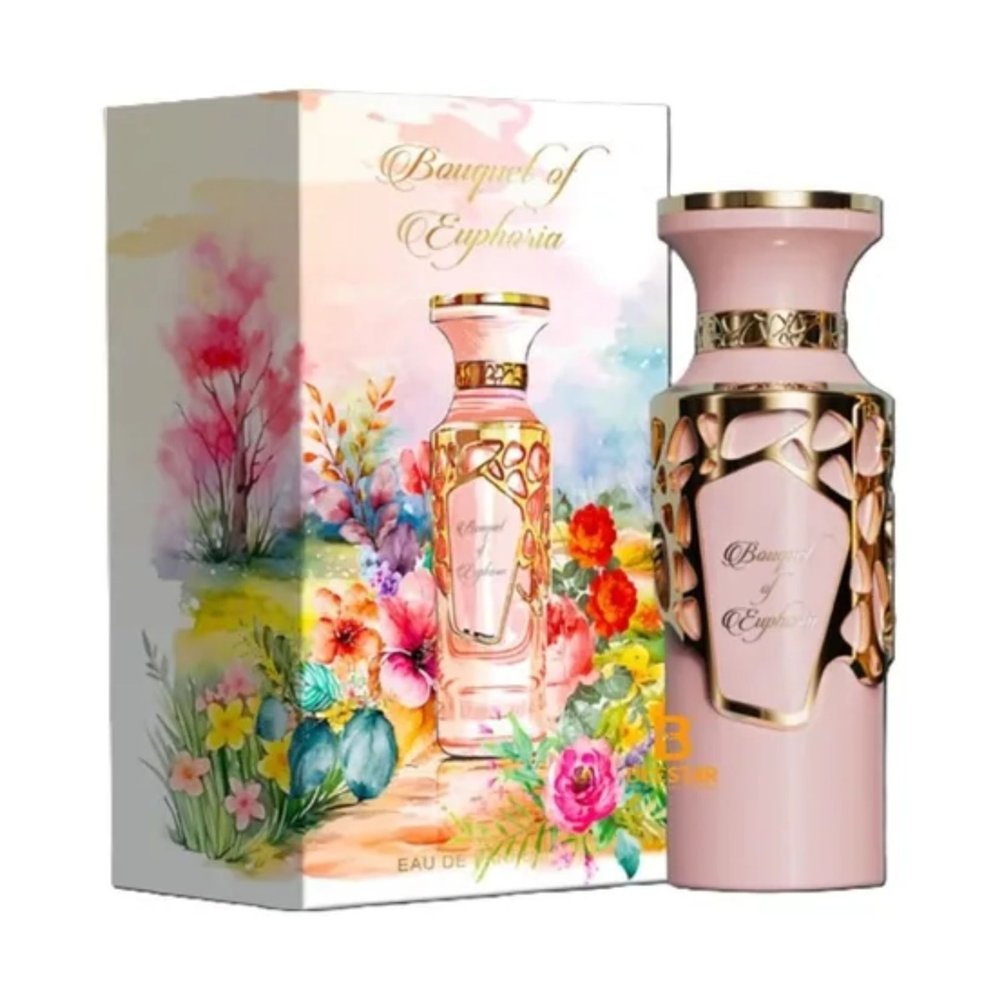 Bouquet of Euphoria de Fragrance World es una fragancia de la familia olfativa Floral para Mujeres. Las Notas de Salida son heliotropo, Frutas confitadas; las Notas de Corazón son gardenia, jazmín, sándalo; las Notas de Fondo son vainilla, caramelo y almizcle.