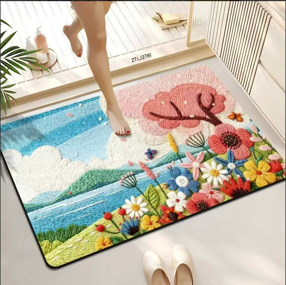 ALFOMBRA DE LINO MULTIUSO FLORES 3D TEJIDO 40CM X 60CM