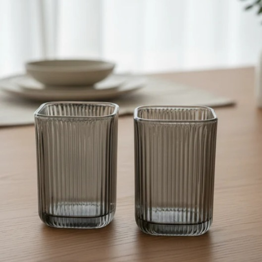 SET X 6 VASOS BAJOS CUBE GREY VIDRIO