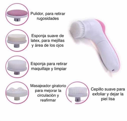 FUNCIONA CON 2 PILAS AA/ INCLUYE 5 CABEZALES INTERCAMBIABLES PARA DISTINTOS TRATAMIENTOS