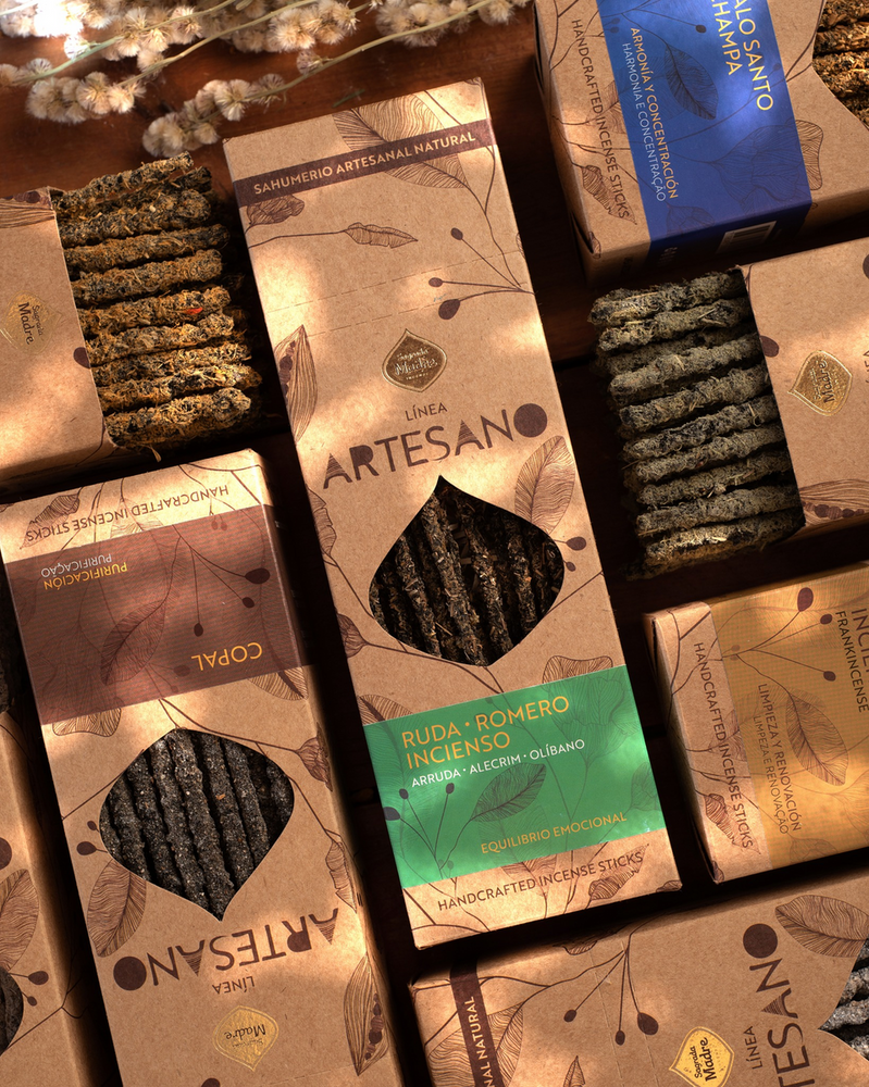 HECHO A MANO SAHUMERIO ARTESANAL NATURAL CONTENIDO: 10 VARILLAS GRUESAS DURACIÓN: CADA VARILLA DURA 1 HORA