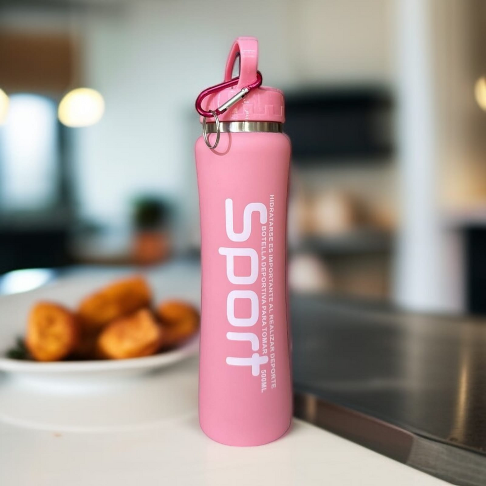TERMO DEPORTIVO 500CC CON PICO CON MOSQUETON PARA TRANPORTAR