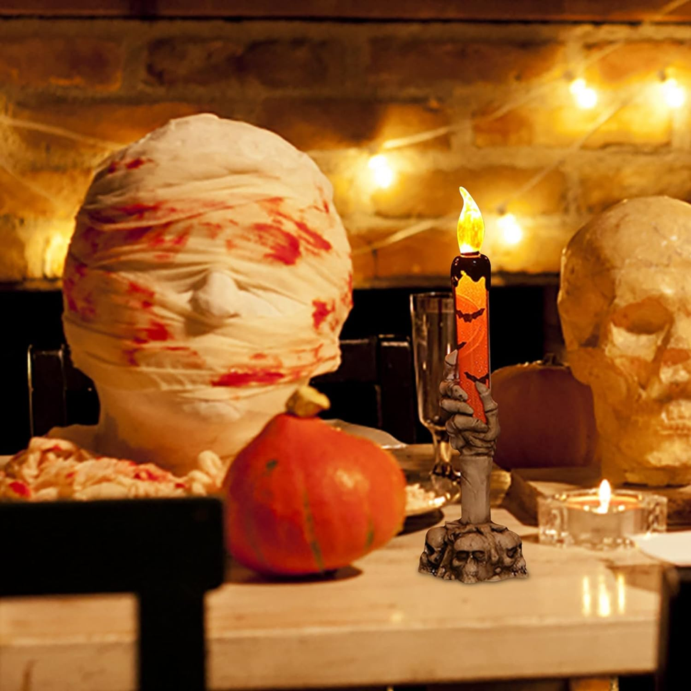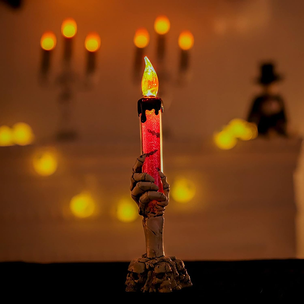 DECORACIÓN ÚNICA DE HALLOWEEN: DISEÑO ESPECIAL EN FORMA DE VELA, ES ADECUADO COMO DECORACIÓN DE HALLOWEEN, INCLUSO EN TU CASA O FIESTA AL AIRE LIBRE. ¡CUALQUIER HORA ESTÁ BIEN, DE NOCHE O DE DÍA! MEJORARÍA ESTE AMBIENTE FESTIVO PARA TUS AMIGOS Y FAMILIARES. LÁMPARA SEGURA SIN LLAMA, SIN HUMO NI OLOR, NO CAUSARÁ NINGÚN INCENDIO PELIGROSO. SIN ENSUCIAR NI GOTEAR, ASÍ QUE NO TE PREOCUPES POR LA LIMPIEZA. ES SEGURO PARA MADRES EMBARAZADAS, NIÑOS Y MASCOTAS USAR PILAS: LA VELA SIN LLAMA FUNCIONA CON 3 PILAS DE BOTÓN AG13 (INCLUIDAS).