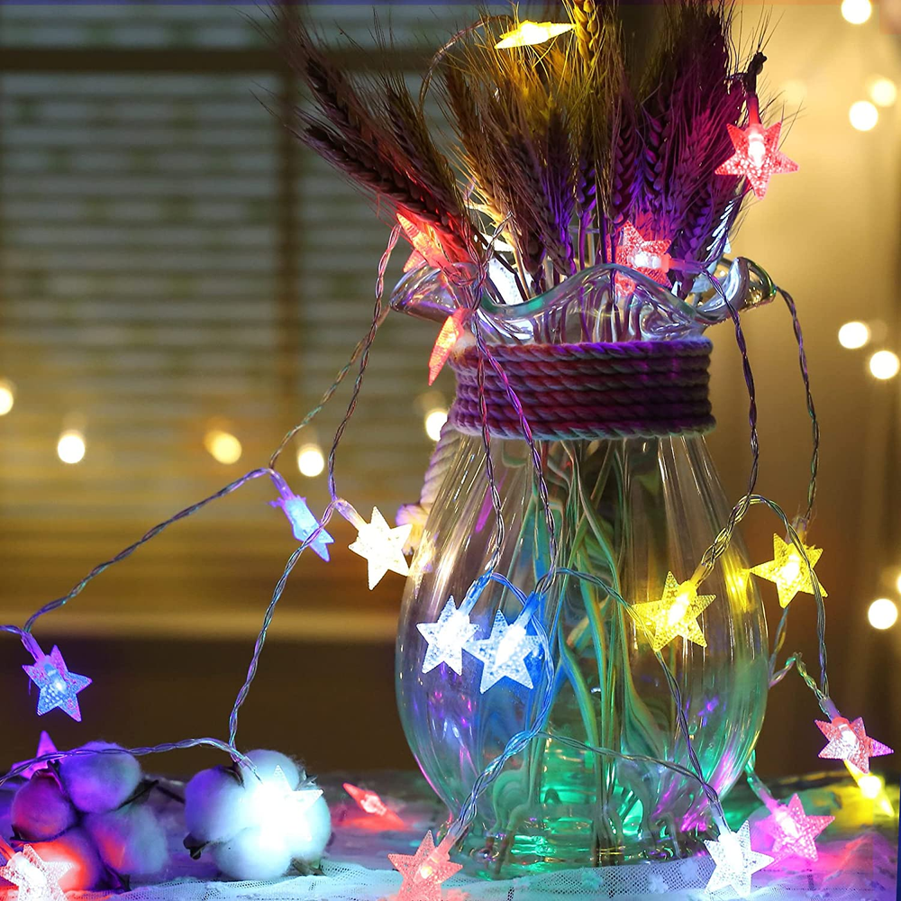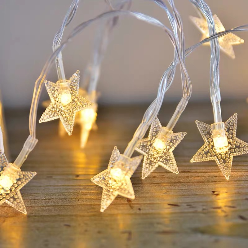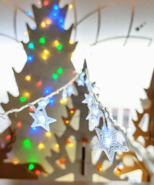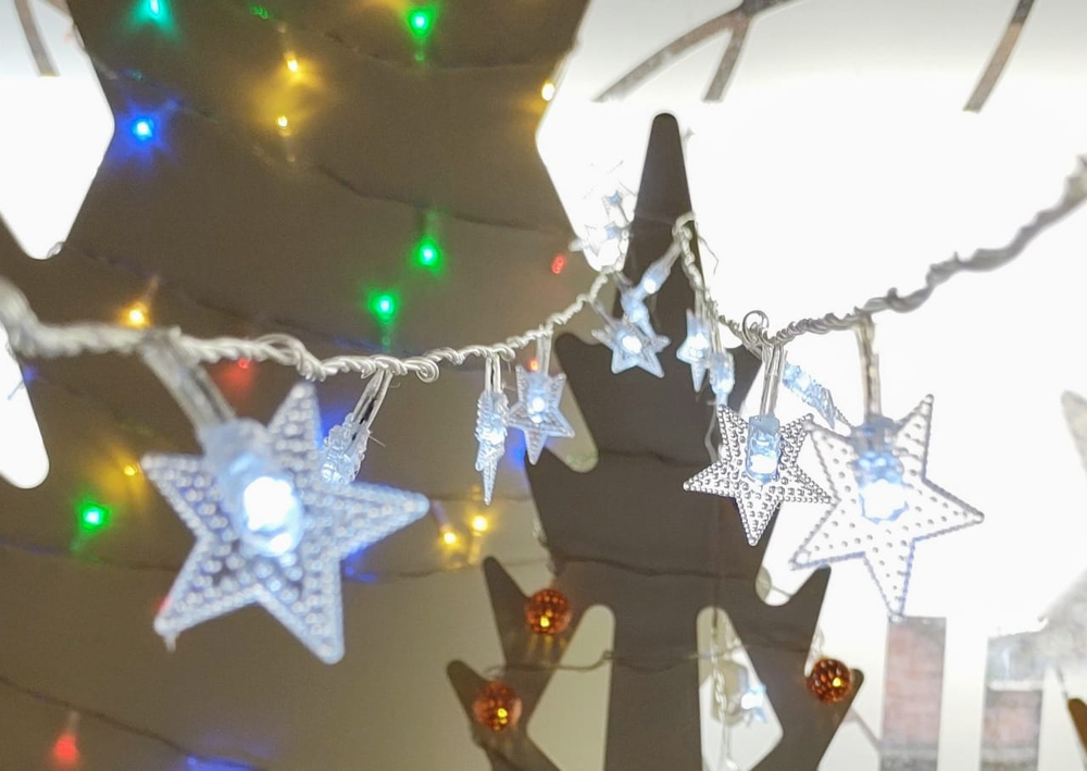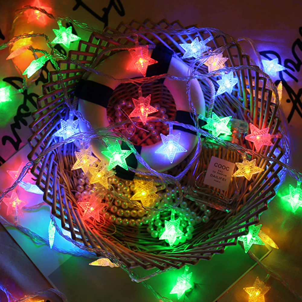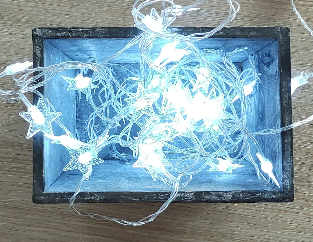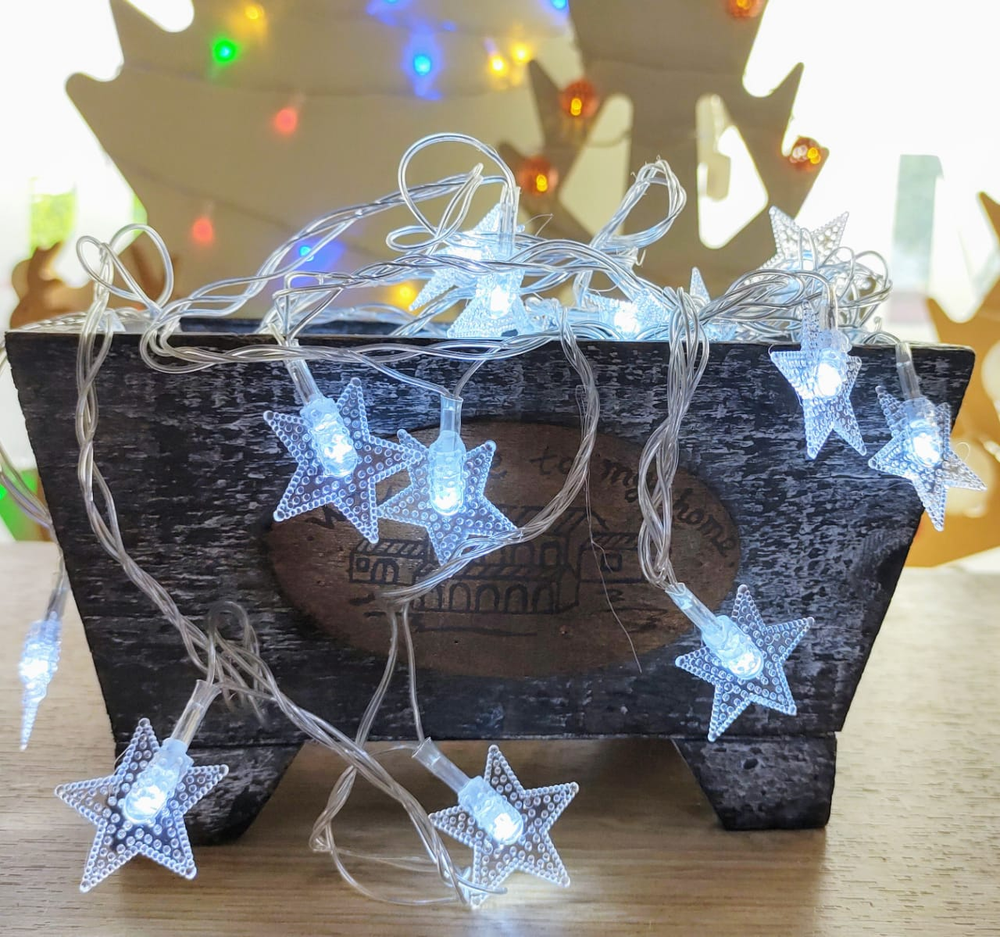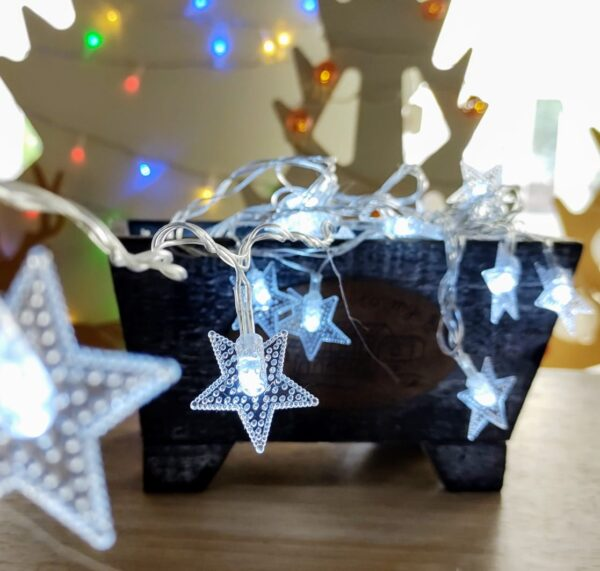 GUIRNALDA ESTRELLA CRISTAL 4 M 20 ESTRELLAS C/U MIDE 3 X 3 CM FUNCIONA CON 2 PILAS 2AA (NO INCLUIDAS)