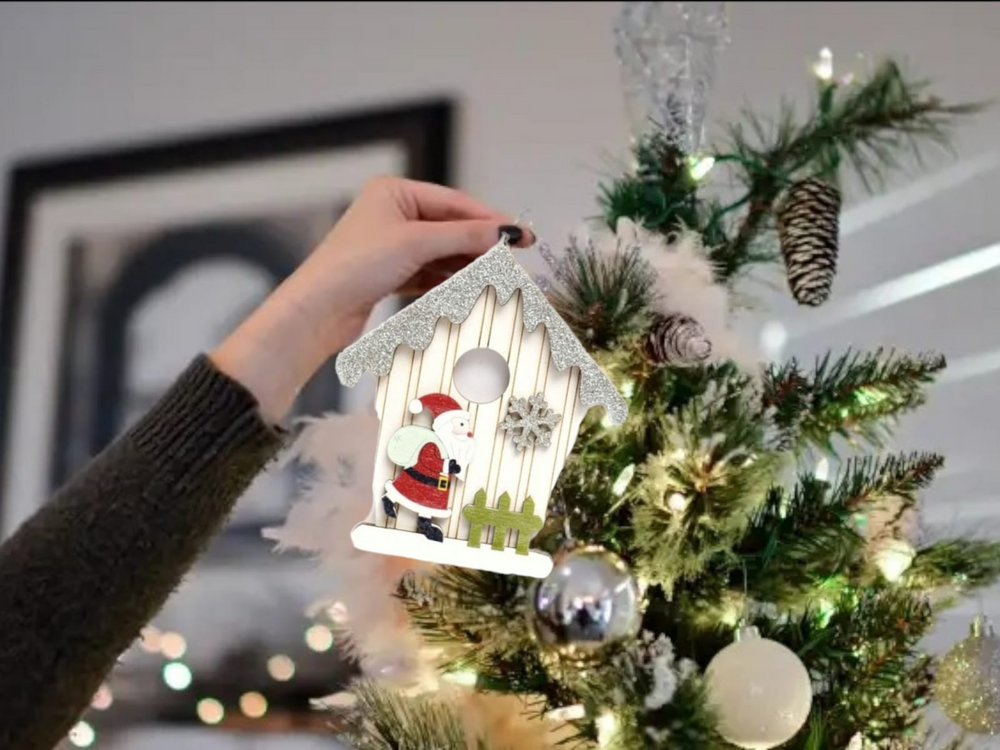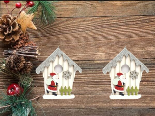 ADORNO CASITA MADERA PLATEADA *PAPA NOEL NIEVE PREMIUM