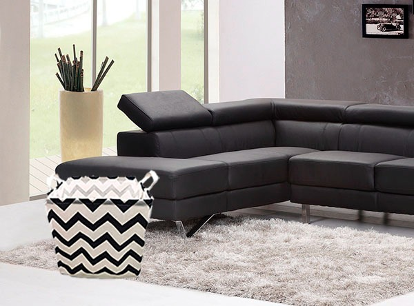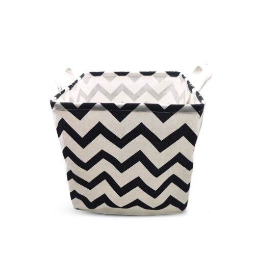 DESCRIPCIÓN ORGANIZADOR DE TELA A RAYAS BLANCO Y NEGRO CON MANIJAS PARA TRANSPORTAR
