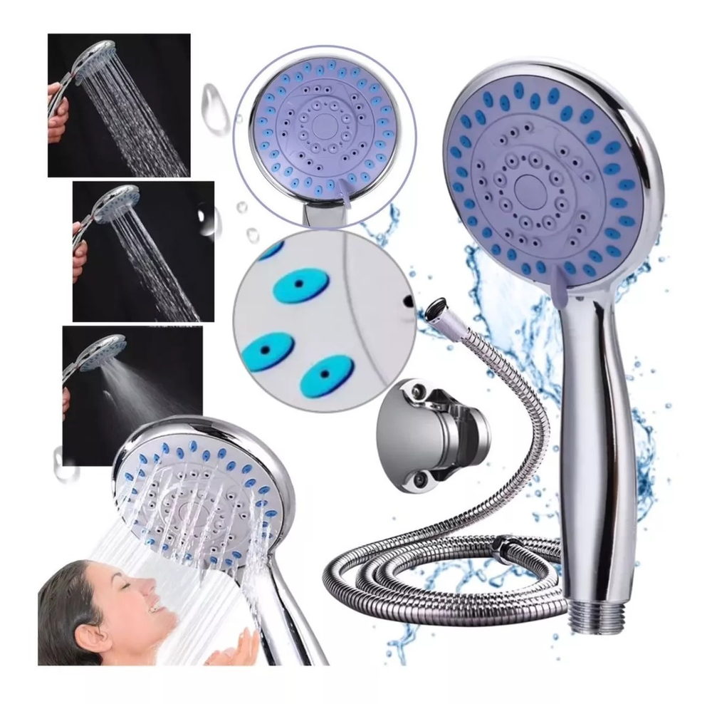 RENUEVA Y CAMBIA COMPLETAMENTE TU DUCHA. FÁCIL DE USAR E INSTALAR. CON GOMAS EN EL CABEZAL PARA DAR MAYOR PRESIÓN EN EL FLUJO DE AGUA. CON AJUSTADOR PARA CAMBIAR EL ESTILO DE CHORRO DEL AGUA. *INCLUYE – MANGUERA 150CM – DUCHA TELÉFONO TIPO EUROPEO CON AJUSTADOR DE CHORRO – SOPORTE – TORNILLOS – BASE PLÁSTICA PARA LOS TORNILLOS – MEDIDA TORNILLOS: 0.5CM DIÁMETRO X 2.5CM LARGO.