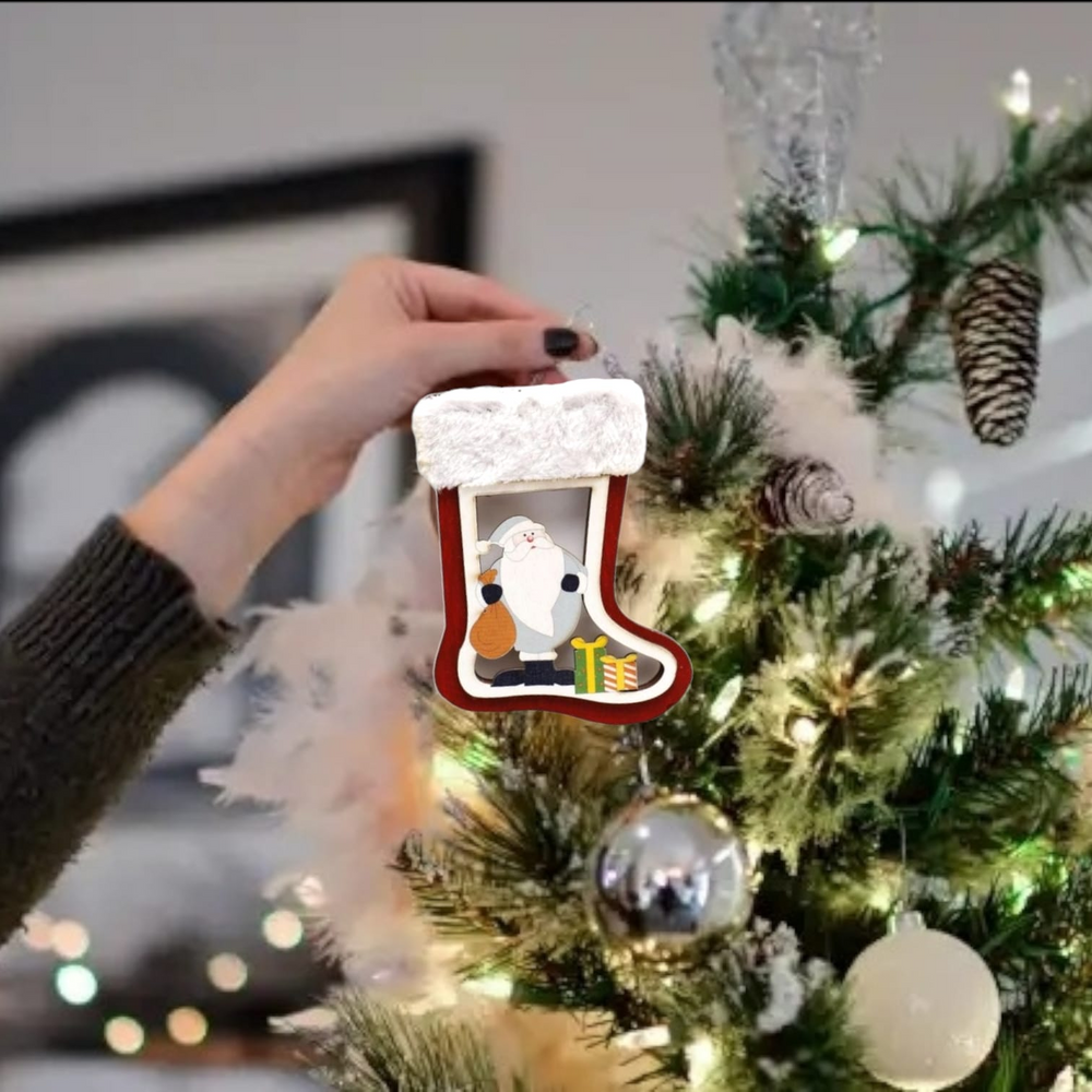 ADORNO BOTA ROJA MADERA **SANTA CLAUS** PREMIUM 12 x 9CM