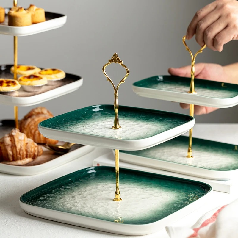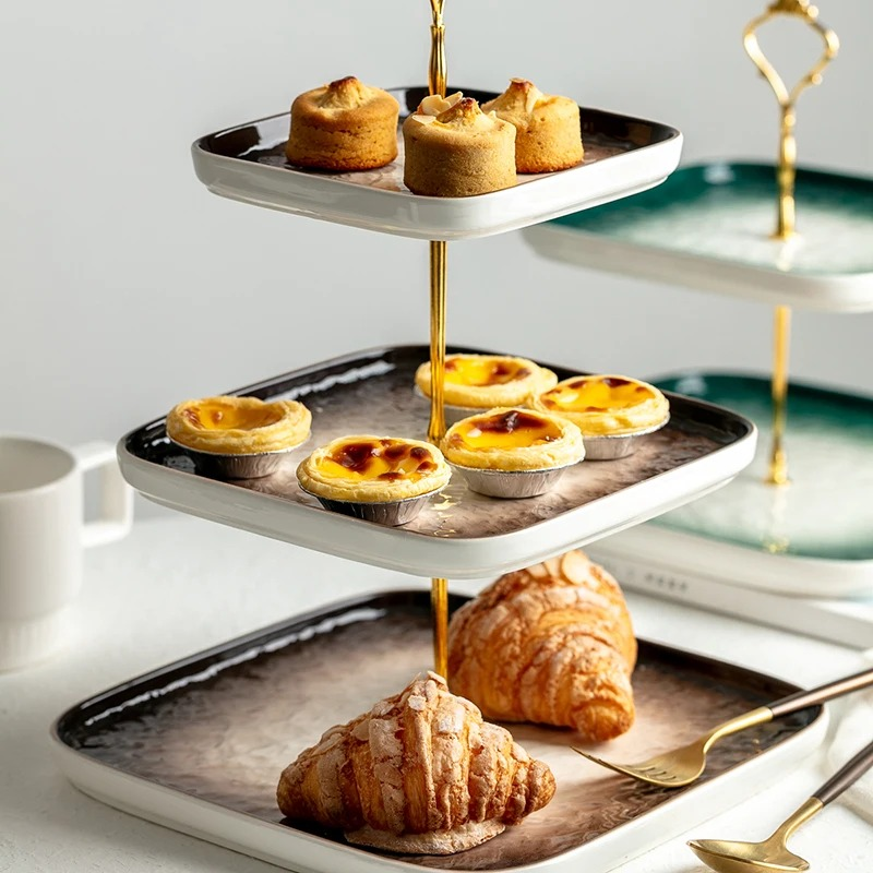 TORRE TRIPLE BANDEJA CUADRADA DE CERAMICA DEGRADE H52