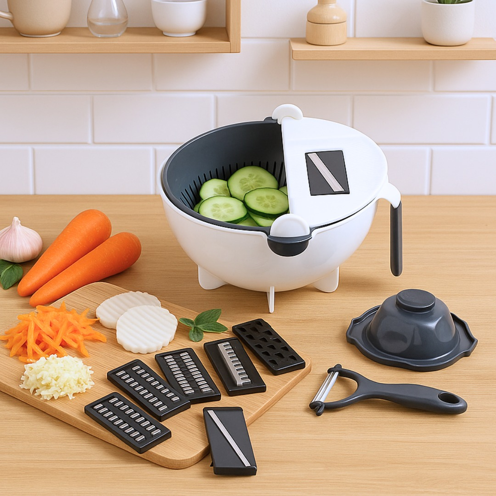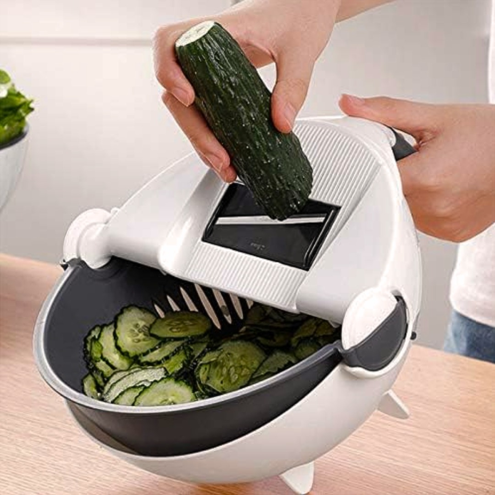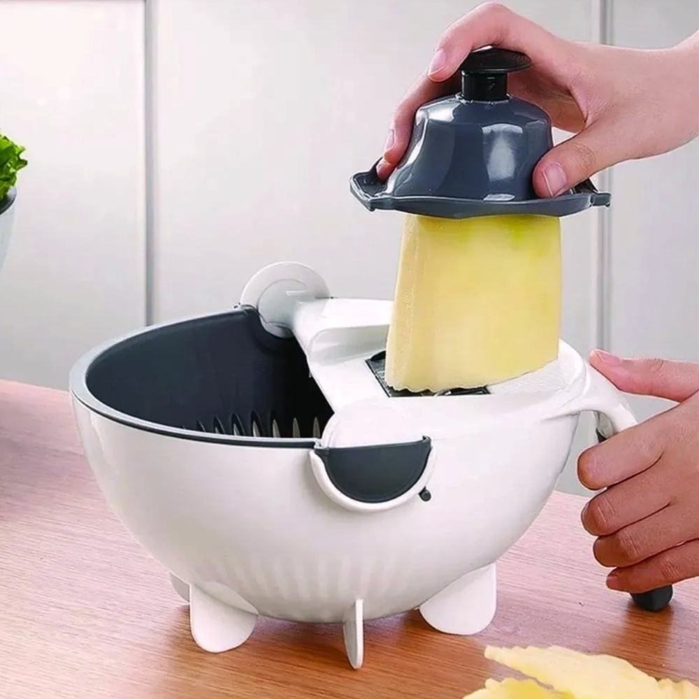 ARTEFACTO DE CORTE DE VERDURAS MULTIFUNCIONAL PARA EL HOGAR, MÁQUINA TRITURADORA DE PATATAS MANUAL PARA CORTAR VERDURAS EN LA COCINA (AZUL) CARACTERÍSTICAS: CUCHILLA MÚLTIPLE CON 7 CUCHILLAS REEMPLAZABLES, PUEDES CORTAR QUESO, TOMATES, CEBOLLAS, PEPINOS Y REPOLLO DE DIFERENTES FORMAS, TAMAÑOS Y GROSORES. ES MÁS FÁCIL COCINAR. CARACTERÍSTICAS HEBILLA GIRATORIA, ÁNGULO DE ROTACIÓN AUTOMÁTICO, LA CESTA ES ESTABLE, FÁCIL DE LIMPIAR Y SEPARACIÓN DE DOBLE CAPA, VARIOS PATRONES. UNA CESTA SE PUEDE UTILIZAR PARA VARIOS PROPÓSITOS, APILAR PARA ALMACENAR AGUA Y SEPARAR COSAS. FÁCIL DE USAR LA TABLA DE CORTAR SE PUEDE QUITAR. CÓMODO MANGO ANTIDESLIZANTE PARA CONTROLARLO CON UNA SOLA MANO. DISEÑO DE SEGURIDAD VIENE CON UN PROTECTOR DE MANOS PARA EVITAR LESIONES ACCIDENTALES AL CORTAR Y, AL MISMO TIEMPO, PUEDES CORTAR TANTO COMO SEA POSIBLE Y EVITAR QUE SE DESPERDICIE. LA PARTE INFERIOR DE LA TRITURADORA ES ESTABLE Y ESTÁ VENTILADA, POR LO QUE NO TIENES QUE PREOCUPARTE DE DAÑAR LA MESA. CIERRE GIRATORIO PARA FACILITAR EL LAVADO Y EL DRENAJE. DESCRIPCIÓN DEL PRODUCTO: NOMBRE: CESTA GIRATORIA MULTIFUNCIONAL MATERIAL: MATERIAL DE PP DE CALIDAD COLOR: BLANCO USOS: CORTAR VERDURAS, LAVAR VERDURAS Y ESCURRIR EL AGUA EL PRODUCTO INCLUYE: 1 CORTADOR DE VERDURAS + 7 CUCHILLAS + 1 CUCHILLO DE PELAR + 1 PROTECTOR DE MANOS + 1 CAJA DE ALMACENAMIENTO DE 1 HOJA