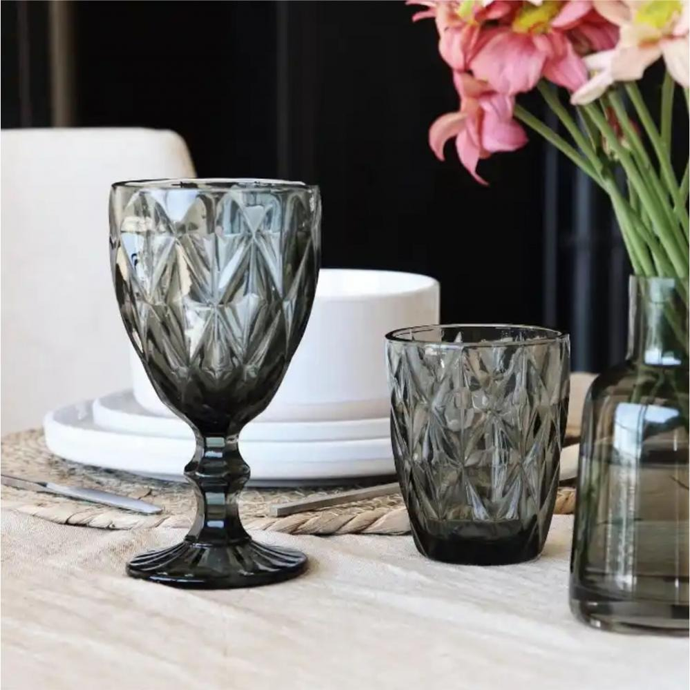 COPAS DE VIDRIO LABRADO. INCLUYE 6 UNIDADES, IDEAL PARA LUCIR EN TU MESA.