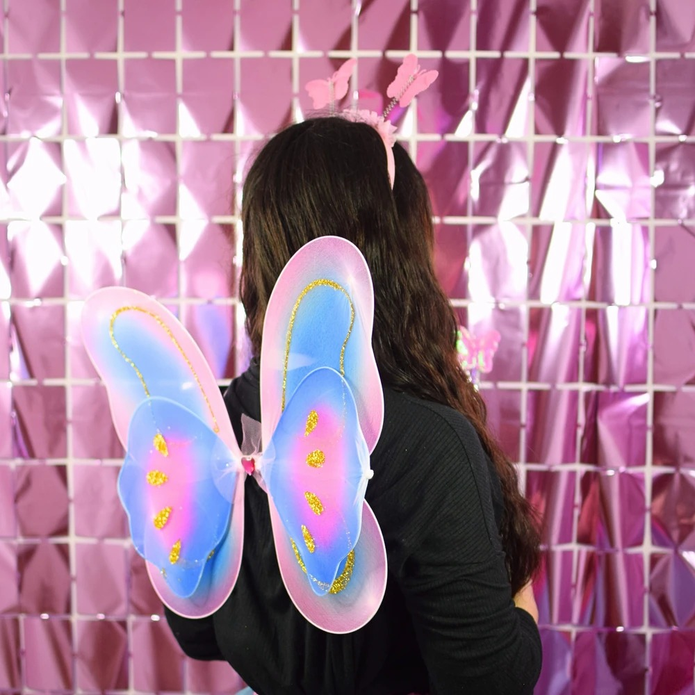SET DE DISFRAZ DE MARIPOSA QUE INCLUYE: ALAS, VINCHA Y VARITA MÁGICA