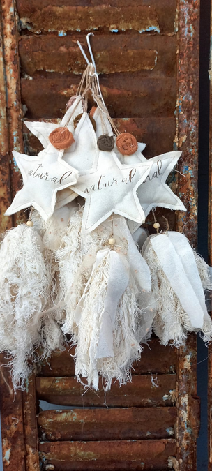 ESTRELLAS VINTAGE ARTESANAL + BORLA MEDIDAS 12 X 12CM LARGO 30CM