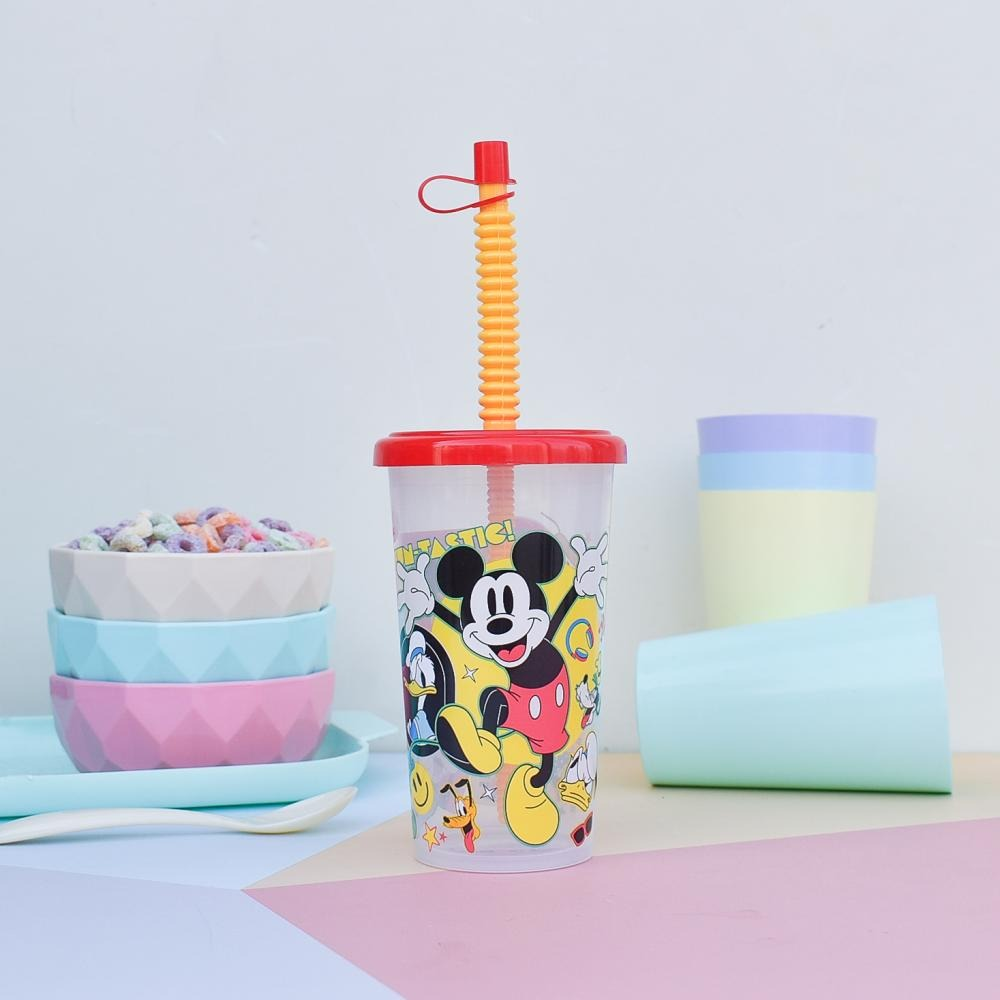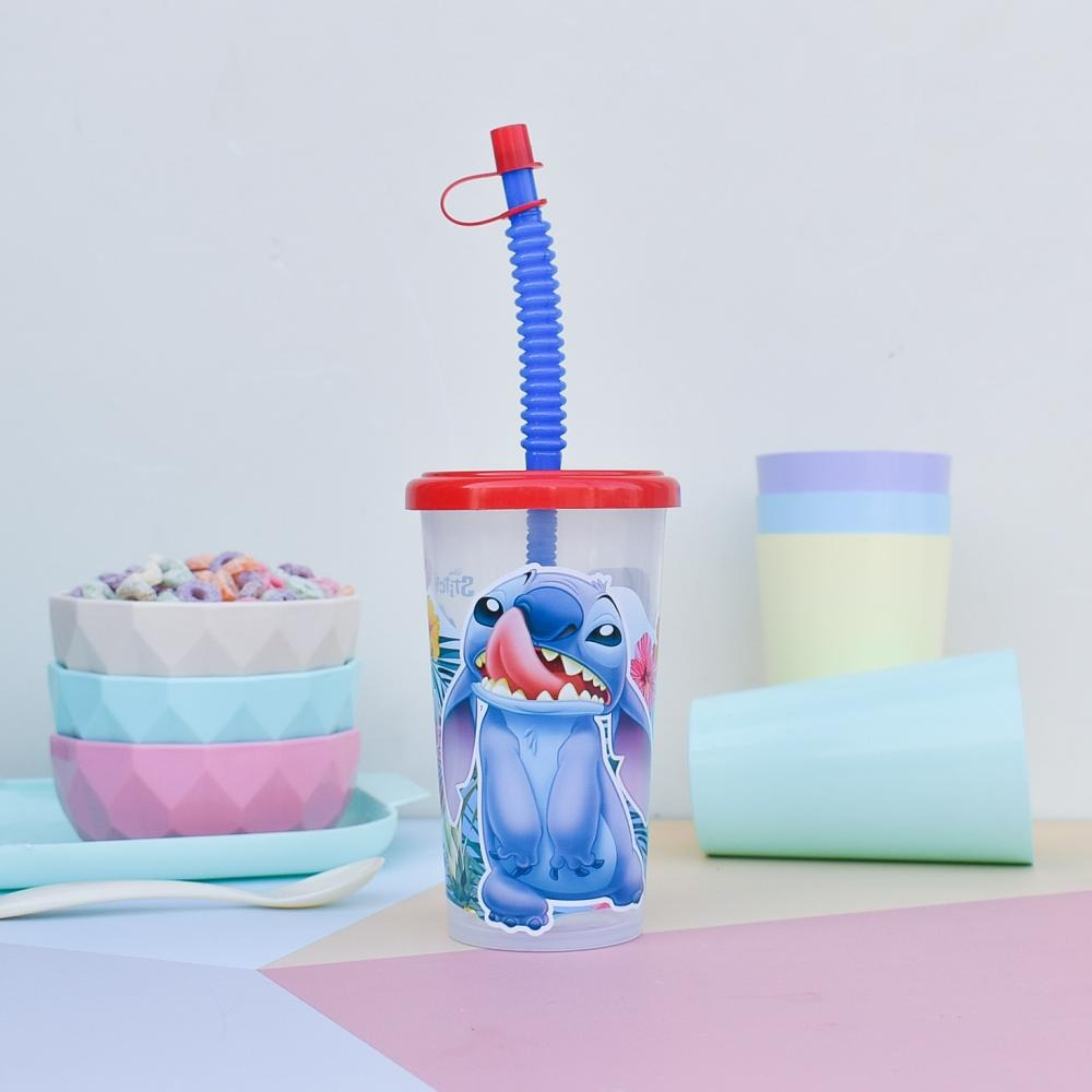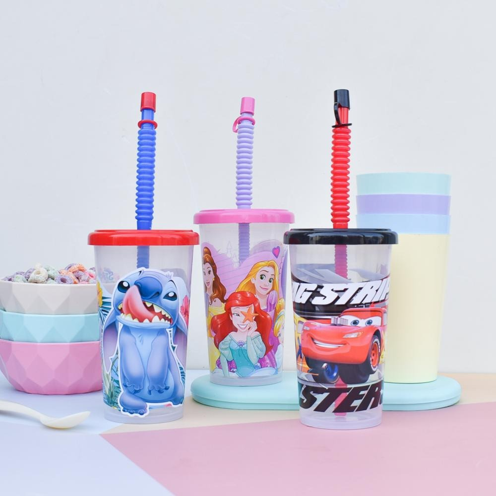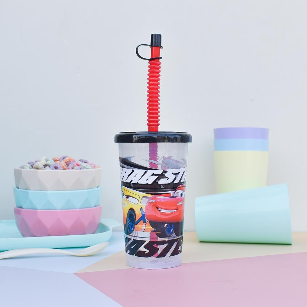 VASO ESTAMPADO DE PLASTICO CON TAPA ENCASTRABLE, CON SORBETE MAS TAPITA CAPACIDAD: 400 CC ALTURA: 16CM DIÁMETRO: 7CM