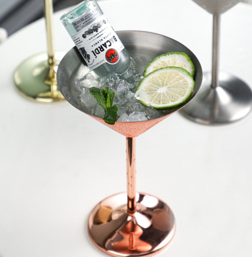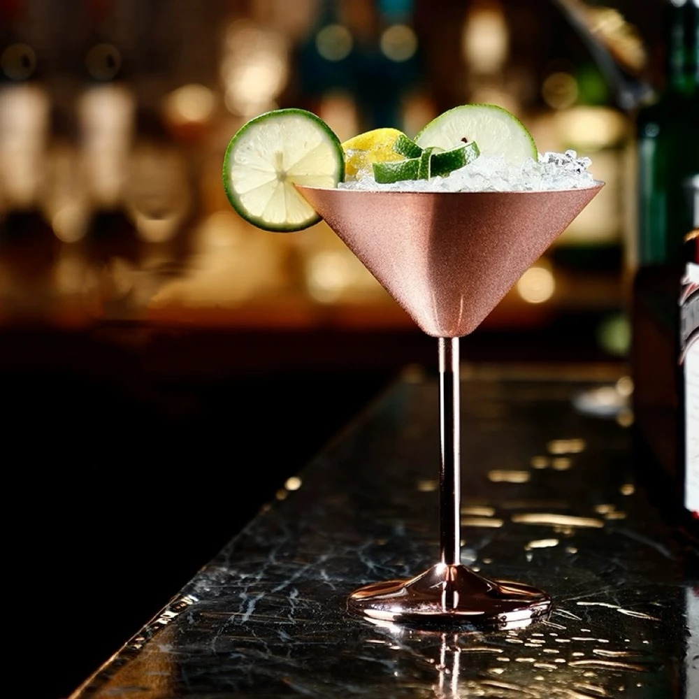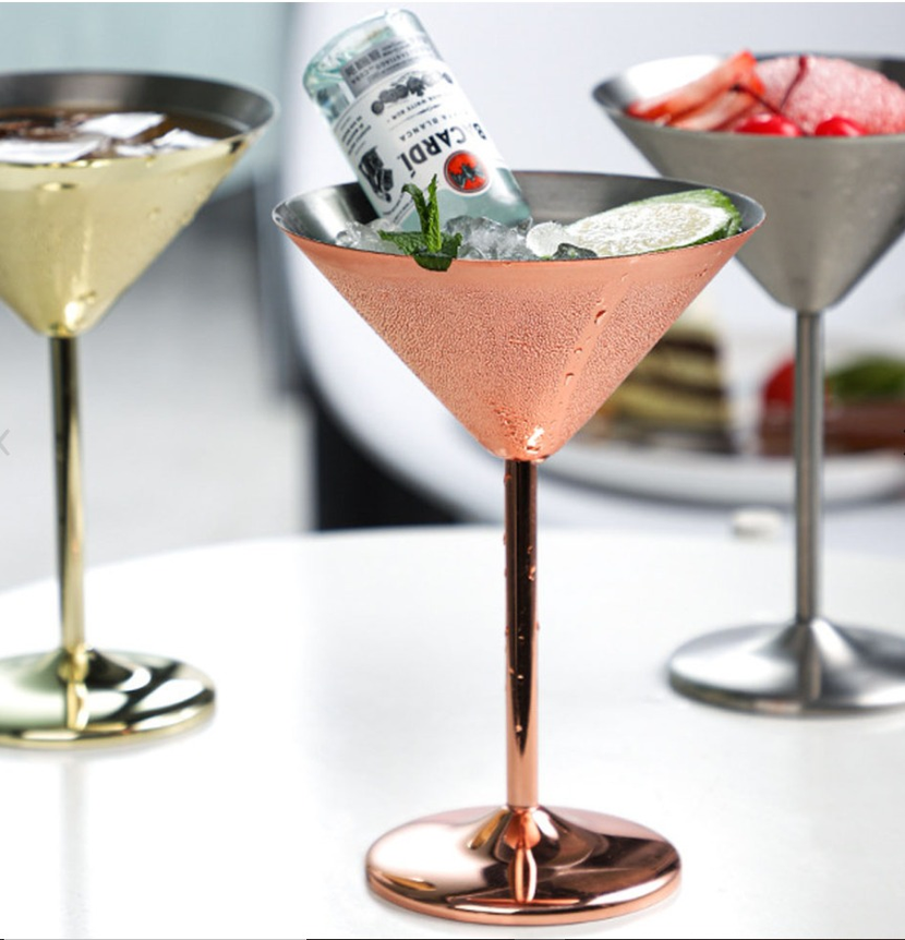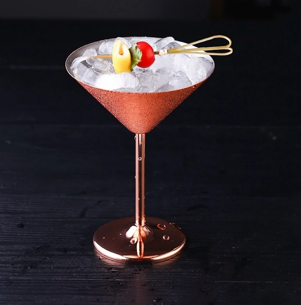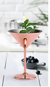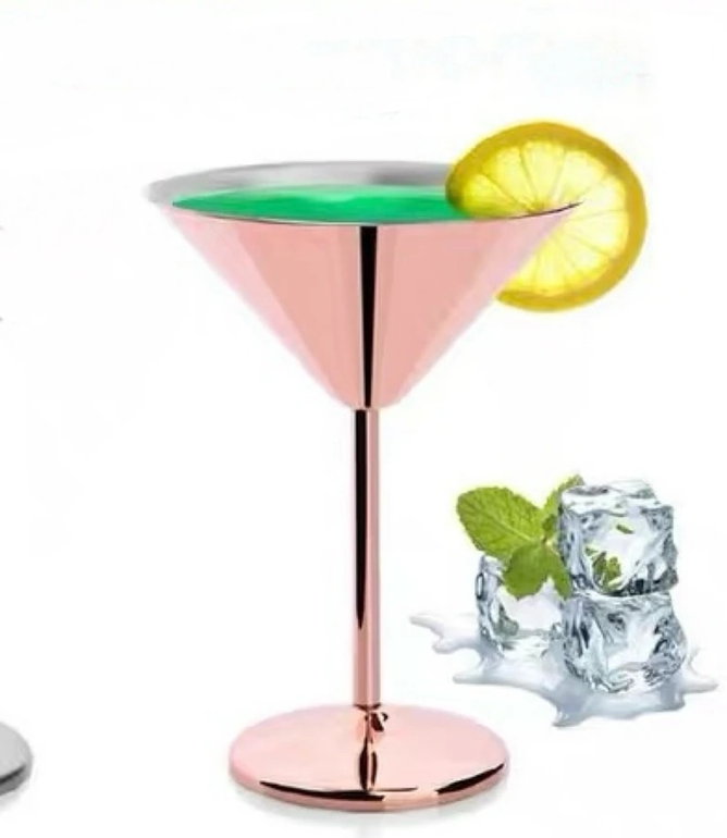 COPA DE MARTINI DE COLOR ROSÉ, DE ALTO 17CM. PARA COCTÉLES. ACERO INOXIDABLE