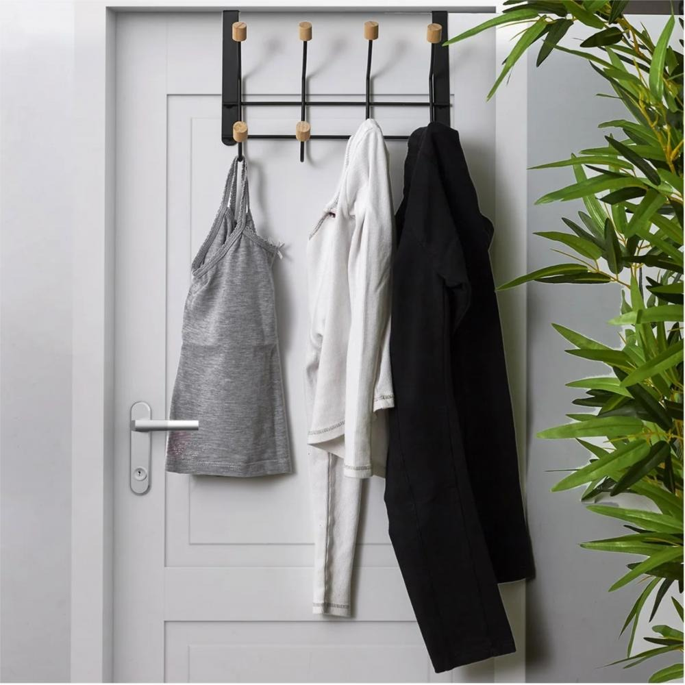 PERCHERO COLGANTE PARA PUERTA CON GANCHOS DE MADERA