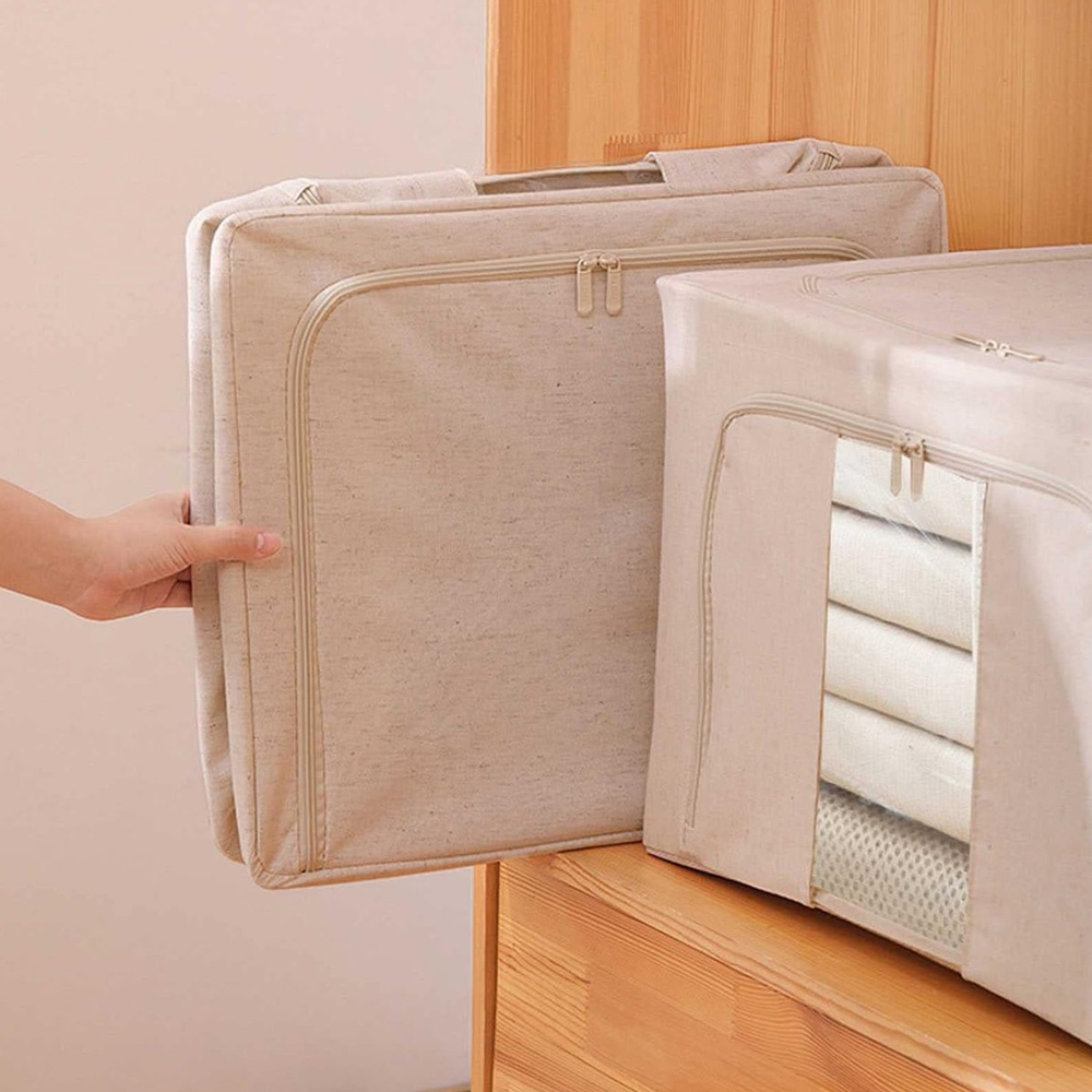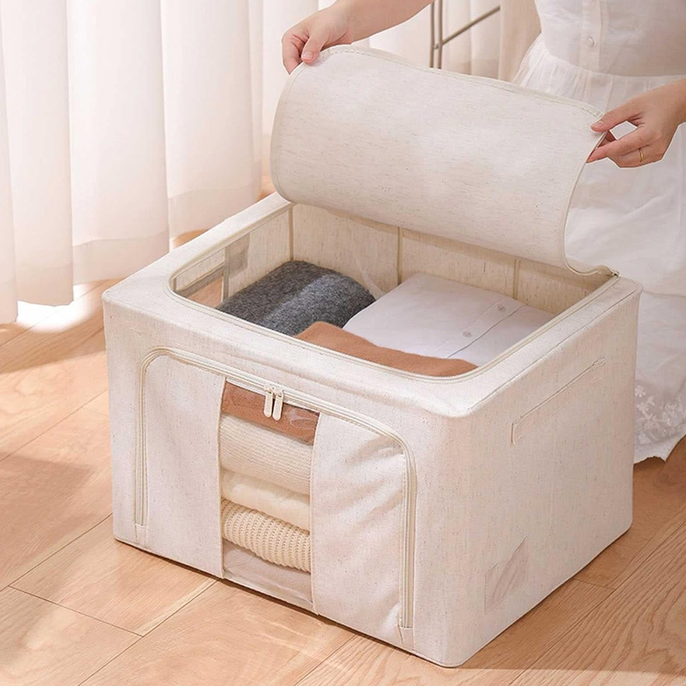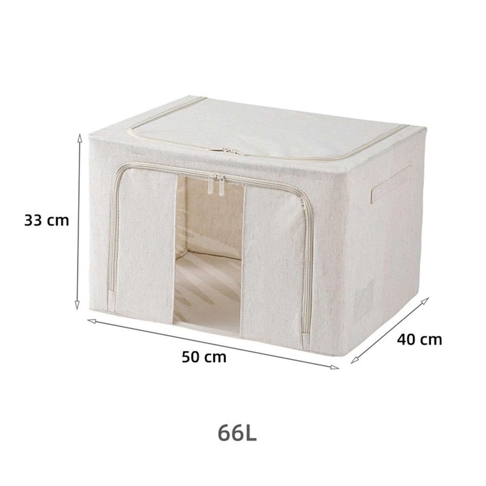 MULTIORGANIZADOR XL DE TELA DESCRIPCIÓN CAJA MULTIORGANIZADORA CON ESTRUCTURA DE METAL CUENTA CON CIERRE SUPERIOR Y FRONTAL, PEQUEÑAS VENTANAS CON NYLON CRISTAL PARA PODER VER EL CONTENIDO. ESTA CAJA ES IDEAL PARA ALMACEAR ACOLCHADOS, ROPA DE CAMA, ROPA DE INVIERNO O TEXTILES DE USO POCO FRECUENTE. INFORMACIÓN DETALLADA MATERIAL.