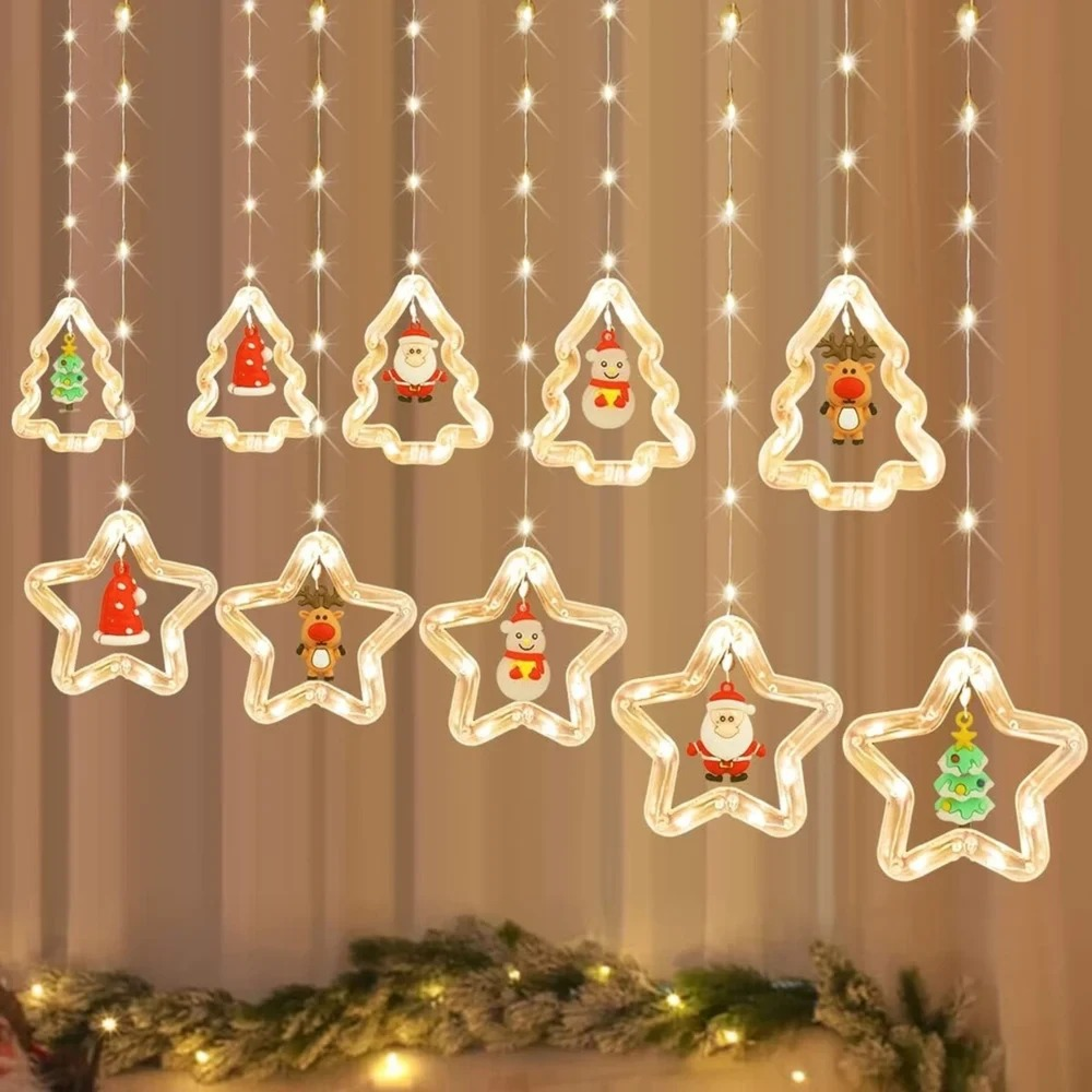 LO QUE HACE QUE ESTAS GUIRNALDAS SEAN AÚN MÁS ESPECIALES ES QUE VIENEN CON 10 ESTRELLAS Y 10 ADORNOS PARA COLOCAR EN LAS ESTRELLAS, LO QUE TE PERMITE PERSONALIZAR AÚN MÁS TU DECORACIÓN NAVIDEÑA. PUEDES DISTRIBUIR LOS ADORNOS DE MANERA CREATIVA EN LAS ESTRELLAS Y COLGARLAS EN LAS CORTINAS LED PARA UN EFECTO DESLUMBRANTE Y ÚNICO. ADEMÁS, ESTAS GUIRNALDAS SE PUEDEN UTILIZAR DURANTE TODO EL AÑO, INCLUSO SIN LOS ADORNOS, PARA AGREGAR UN TOQUE DE BRILLO Y AMBIENTE A TU HOGAR EN CUALQUIER OCASIÓN ESPECIAL.