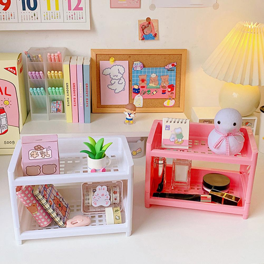 ESTANTE DE ALMACENAMIENTO DESMONTABLE DE DOBLE CAPA DE PLÁSTICO PLEGABLE ESTANTE DE ARTÍCULOS DIVERSOS DE ESCRITORIO PARA DORMITORIO PARA EL HOGAR