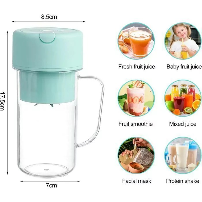 • DE TAMAÑO PEQUEÑO, PORTÁTIL Y DE USOS MÚLTIPLES, SE PUEDE UTILIZAR COMO VASO COMÚN Y LICUADORA DE JUGOS.