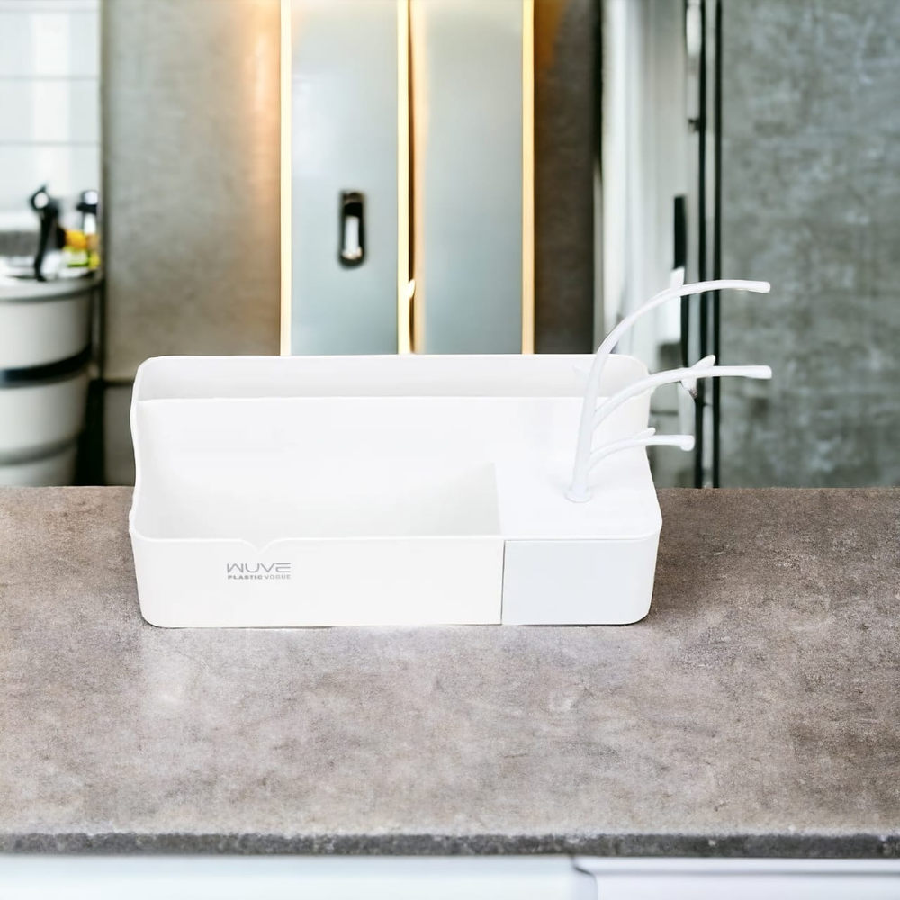 ORGANIZADOR INCLUYE CAJONES DE GUARDO Y LUGAR PARA COLGAR. MEDIDAS APROXIMADAS: 23.6 X 10.2 X 8.5 CM. MATERIAL: PLÁSTICO.