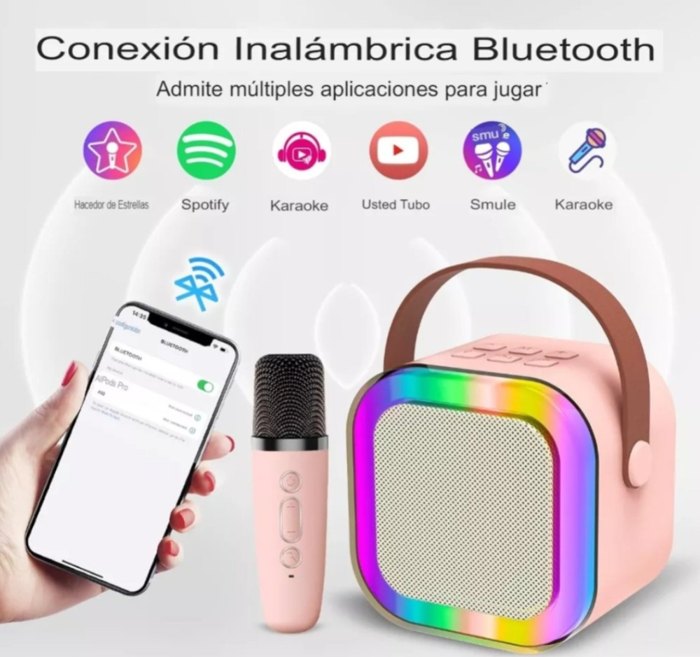 PARLANTE PORTATIL INALAMBRICO C/ MICROFONO - POTENCIA: 5W - ALIMENTACION: BATERIA RECARGABLE DE LITIO - AUTONOMIA: 3 A 12 HS PREPÁRATE PARA CONVERTIRTE EN LA ESTRELLA DEL KARAOKE CON EL PARLANTE K12 KARAOKE SPEAKER! ESTE PEQUEÑO GIGANTE ES CAPAZ DE LLENAR CUALQUIER HABITACIÓN CON SU POTENTE SONIDO DE 6 WATTS Y SU FUNCIÓN DE KARAOKE QUE TE HARÁ SENTIR COMO UN VERDADER@ ROC