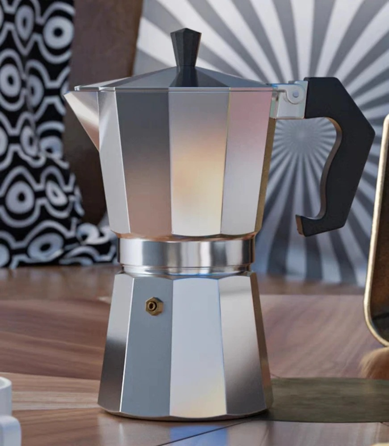 PLATEADO, MANGO NEGRO MEDIDAS(CM): 18CM X 15CM X 9CM MATERIALES: ALUMINIO